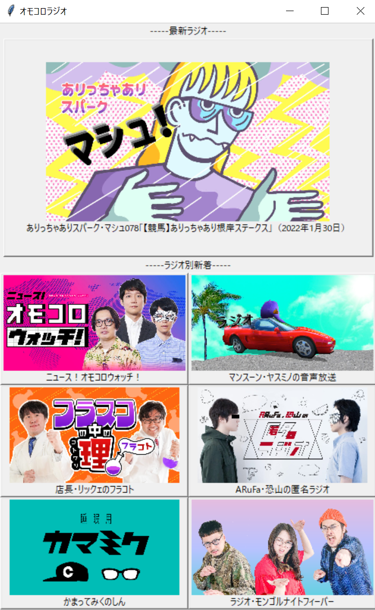 オモコロの最新ラジオ音声を一覧から選べるアプリです